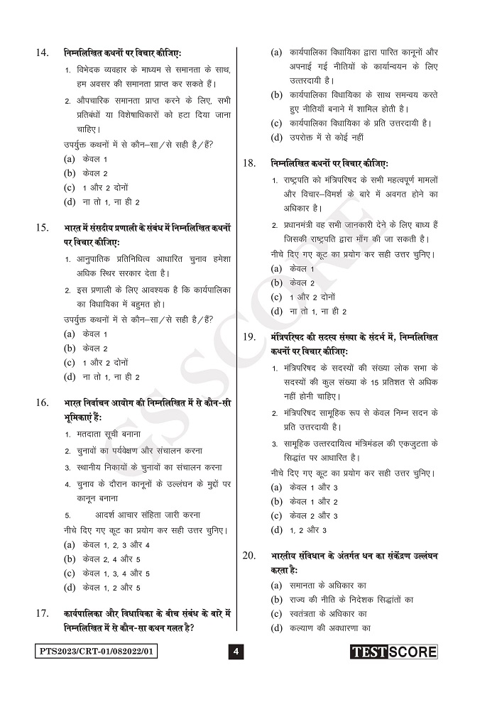 GS SCORE PT CRT Test Series Hindi for Prelims 2023