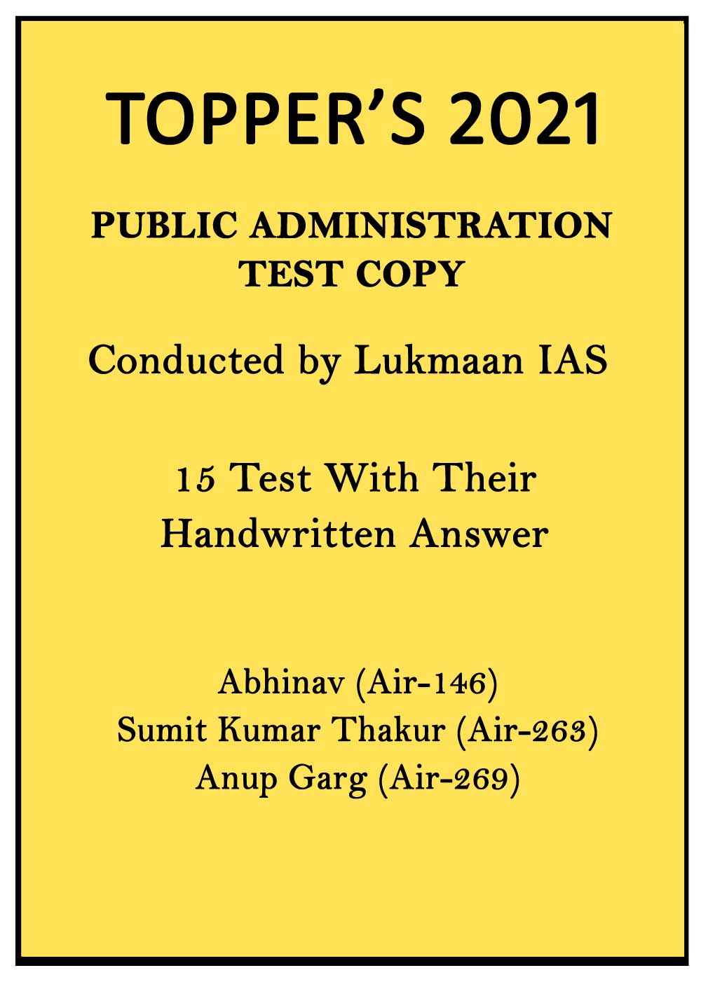 IAS Topper Public Administration Handwritten Test Series Copy Notes 2021 by Lukmaan IAS in English for UPSC Mains and Other Competitive Exam Preparations 2022. The study material has been compiled by EducomIQ Notes Possesses 1 booklet and a Total no of 892 pages containing 15 test series of the following Toppers :-