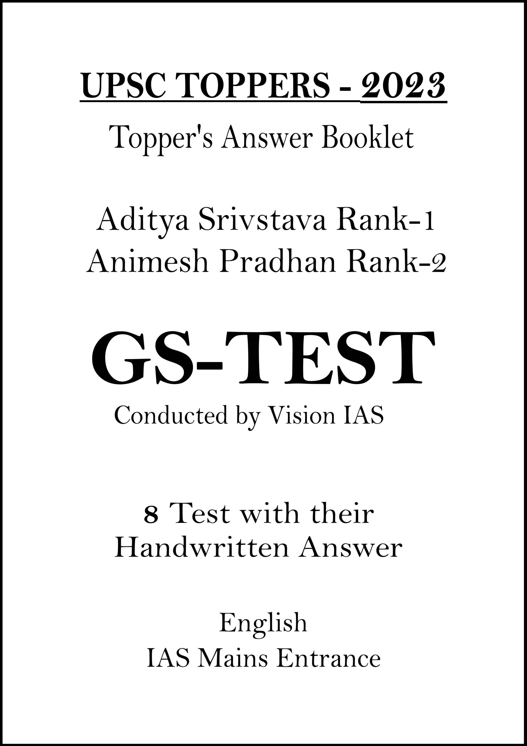 2023 UPSC Toppers Aditya Srivstava-Rank-1 and Aishwaryam Pradhan-Rank-10 GS Handwritten 8-Test Copy Notes in English Medium for UPSC Mains Entrance and Other Competitive Exam Preparations 2024. These notes conducted by Vision IAS